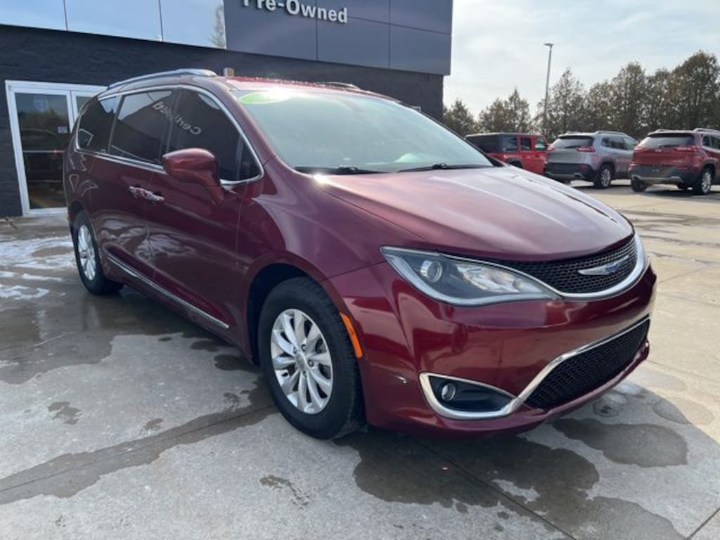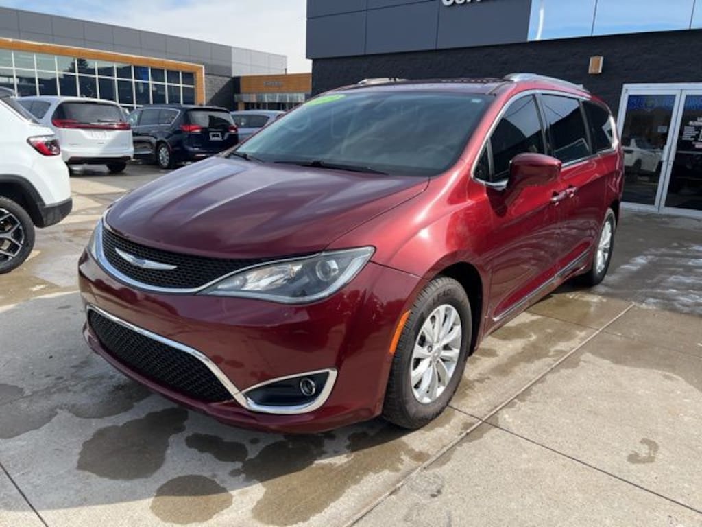 *NO NEED TO LEAVE YOUR HOME OR BUSINESS!! SZOTT DELIVERS!!!. Recent Arrival! Clean CARFAX. 2019 Velvet Red Pearlcoat Chrysler Certified. FWD Pacifica Touring L 9-Speed 948TE Automatic With some available options like Quick Order Package 27L, 17" x 7.0" Aluminum Wheels, 3.25 Axle Ratio, 3rd row seats: split-bench, 4-Wheel Disc Brakes, 6 Speakers, ABS brakes, Air Conditioning, Alloy wheels, AM/FM radio: SiriusXM, Apple CarPlay, Apple CarPlay/Android Auto, Auto-dimming Rear-View mirror, Automatic temperature control, Black Seats, Blind Spot & Cross Path Detection, Bodyside moldings, Brake assist, Bumpers: body-color, Compass, Delay-off headlights, Driver door bin, Driver vanity mirror, Driver's Seat Mounted Armrest, Dual front impact airbags, Dual front side impact airbags, Electronic Stability Control, Emergency communication system: Uconnect Access, Four wheel independent suspension, Front anti-roll bar, Front Bucket Seats, Front dual zone A/C, Front fog lights, Front reading lights, Fully automatic headlights, Garage door transmitter, Google Android Auto, GPS Antenna Input, Heated door mirrors, Heated front seats, Heated steering wheel, Illuminated entry, Integrated Voice Command w/Bluetooth, Knee airbag, Leather steering wheel, Low tire pressure warning, Manufacturer's Statement of Origin, Occupant sensing airbag, Outside temperature display, Overhead airbag, Overhead console, Panic alarm, ParkView Rear Back-Up Camera, Passenger door bin, Passenger seat mounted armrest, Passenger vanity mirror, Perforated Leather Trim Bucket Seats, Power door mirrors, Power driver seat, Power Liftgate, Power steering, Power windows, Radio data system, Radio: Uconnect 4 w/7" Display, Rain sensing wipers, Rear air conditioning, Rear reading lights, Rear window defroster, Rear window wiper, Reclining 3rd row seat, Remote keyless entry, Roof rack, Security system, SiriusXM Satellite Radio, Speed control, Split folding rear seat, Spoiler, Steering wheel mounted audio controls, Tachometer, Telescoping steering wheel, Tilt steering wheel, Touring Suspension, Traction control, Trip computer, USB Host Flip, Variably intermittent wipers, and Voltmeter.
