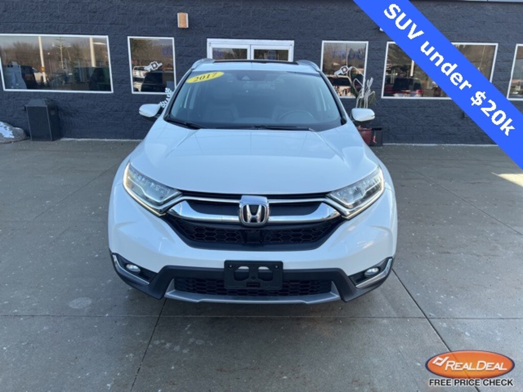 *NO NEED TO LEAVE YOUR HOME OR BUSINESS!! SZOTT DELIVERS!!!. Recent Arrival! CARFAX One-Owner. Clean CARFAX. Odometer is 6741 miles below market average! 2017 White Diamond Pearl Honda AWD CR-V Touring CVT With some available options like 18" Alloy Wheels, 4-Wheel Disc Brakes, 5.64 Axle Ratio, 9 Speakers, ABS brakes, Air Conditioning, Alloy wheels, AM/FM radio: SiriusXM, Apple CarPlay/Android Auto, Auto High-beam Headlights, Auto-dimming Rear-View mirror, Automatic temperature control, Blind Spot Information (BSI) System warning, Brake assist, Bumpers: body-color, Compass, Delay-off headlights, Driver door bin, Driver vanity mirror, Dual front impact airbags, Dual front side impact airbags, Electronic Stability Control, Exterior Parking Camera Rear, Four wheel independent suspension, Front anti-roll bar, Front Bucket Seats, Front Center Armrest, Front dual zone A/C, Front fog lights, Front reading lights, Fully automatic headlights, Garage door transmitter: HomeLink, Heated door mirrors, Heated Front Bucket Seats, Heated front seats, Illuminated entry, Leather Seat Trim, Leather Shift Knob, Low tire pressure warning, Memory seat, Navigation System, Occupant sensing airbag, Outside temperature display, Overhead airbag, Overhead console, Panic alarm, Passenger door bin, Passenger vanity mirror, Power door mirrors, Power driver seat, Power Liftgate, Power moonroof, Power passenger seat, Power steering, Power windows, Radio data system, Radio: AM/FM/HD/SiriusXM Audio System, Rain sensing wipers, Rear anti-roll bar, Rear seat center armrest, Rear window defroster, Rear window wiper, Remote keyless entry, Roof rack: rails only, Security system, Speed control, Speed-sensing steering, Speed-Sensitive Wipers, Split folding rear seat, Spoiler, Steering wheel mounted audio controls, Tachometer, Telescoping steering wheel, Tilt steering wheel, Traction control, Trip computer, Turn signal indicator mirrors, and Variably intermittent wipers.