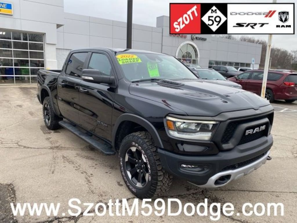 Clean CARFAX. 2022 Ram 4WD 1500 Rebel Diamond Black Crystal Pearlcoat Odometer is 19279 miles below market average! New Arrival. Photos coming soon!